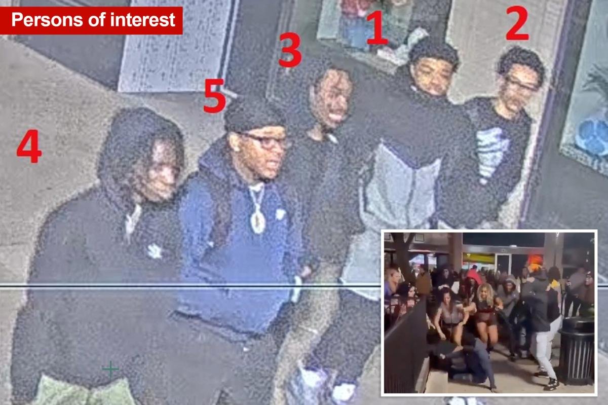 Five people were wounded in a mass shooting near the University of Iowa campus after a large brawl that broke out early Sunday, police confirmed — as they shared a photo of five “persons of interest” in the carnage.