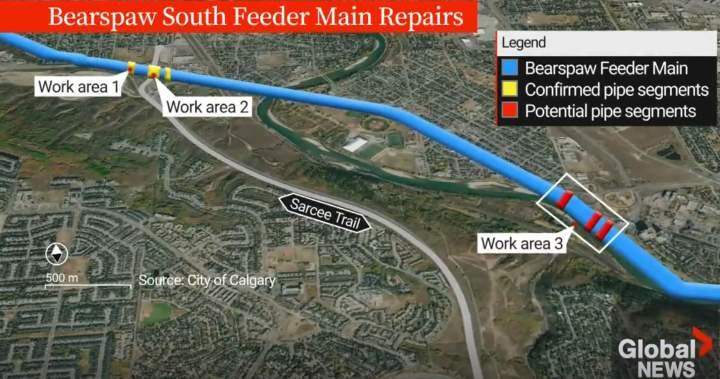The shutdown means Calgarians will be asked to conserve water while the Bearspaw Feeder Main, which normally supplies about 60 per cent of the city’s water, is out of service.