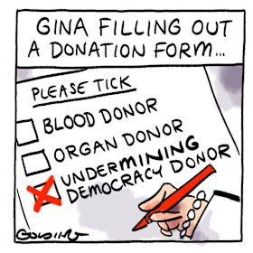 Palmer’s company, Mineralogy, was the top political donor in 2024-25, its $53 million in donations to the Trumpet of Patriots being larger than the donations banked by either of the major political parties. The Liberals and Nationals raised $35 million in combined political donations, while Labor raked in just under $30 million.