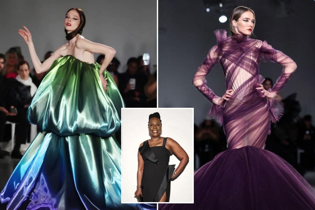 Siriano’s collection was equally dramatic. He sent out sculptural eveningwear, from a translucent jacket with giant ruffled sleeves to a winged bustier. There were styles that wouldn’t fit in a taxi – a sweeping plum tulle mermaid dress that wrapped and tied around the torso requires a limo – and narrower pieces, like a white fluttering leaf bolero jacket paired with a long, slim skirt. In a release, he described his collection as “the borderline between dream and reality, conscious and unconscious.”