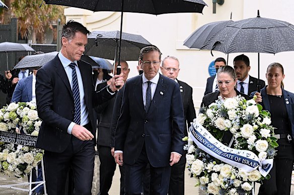 NSW Premier Chris Minns thanked Herzog for his “warm and empathetic embrace” of the victims of the Bondi attacks and said his visit would be a step towards healing and peace.