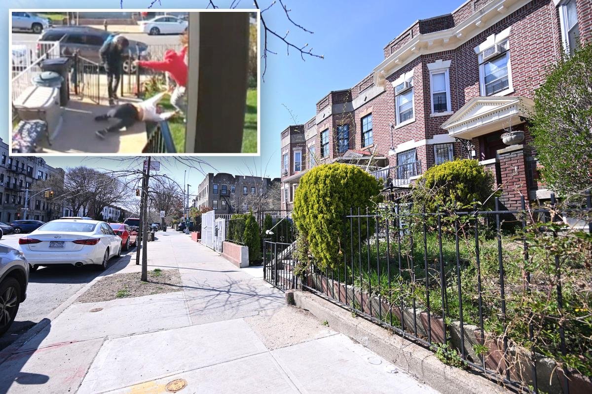 Linda Scott was repeatedly punched in the face and knocked onto her front lawn by one of the dog-walkers when the brawl unfolded just after 9 a.m. Monday on President Street near Troy Avenue in Crown Heights, according to Ring camera footage obtained by The Post.