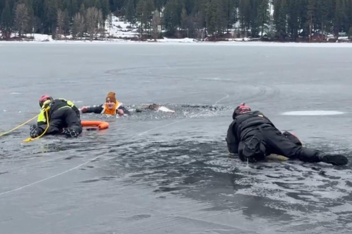 Washington man falls through ice into frigid lake — right in front of cops practicing water rescues