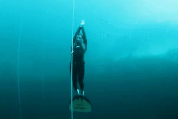 After about 20 minutes of swimming, they decided to stop. They were about 500 metres from the headland. “We didn’t realise how exposed we’d be,” Williams says. “We were really out there.” They lifted the weight off the buoy, dropped it into the water, and let it sink to 85 metres. Williams began preparing for his warm-up dive: he would go down to 10 metres and sit there, suspended, holding his breath for four to five minutes. “The idea of the warm-up dive is to switch off and get in a meditative state,” he says. “The calmer you are, the less oxygen you use.” He began what he calls his “breathe-up”, a series of rhythmic inhalations, loading his lungs with more than 10 litres of air. He then swam down 10 metres and, with one hand on the rope, closed his eyes and relaxed. “It was great. My heart rate dropped to the mid-30s. I totally zenned out.”